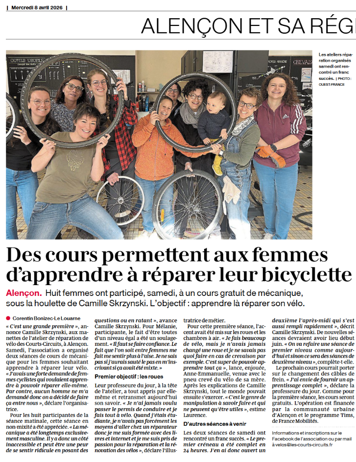 Cours de mécanique au féminin 2026 08/04/2026 – OUEST-FRANCE Lire l’article sur le site du Ouest-France